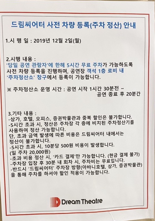 티켓수령 옆이 바로 드림씨어터 주차 정산 하는 곳입니다