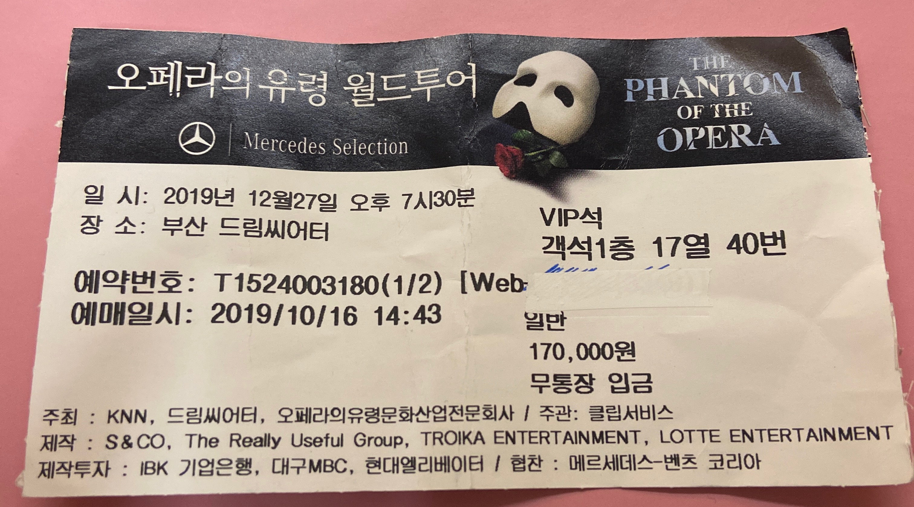 이제 한국배우가 하는 오페라의 유령은 봐도 아쉬울 것 같아요ㅋㅋㅋㅠㅠㅠㅠ